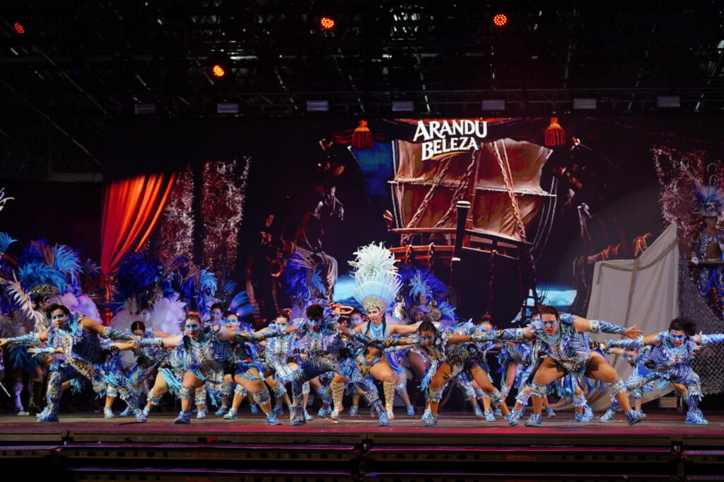Durante la noche inaugural, las comparsas presentaron sus producciones artísticas combinando música, danza y narrativa escénica en un formato teatral que resalta el talento y la creatividad del carnaval correntino. La apertura estuvo a cargo de Copacabana, que llevó al escenario “Messias”, una obra inspirada en el sueño mundialista a través de una propuesta conceptual y coreográfica. Posteriormente, Ará Berá presentó “El Rayo de la Locura”, destacándose por su despliegue coreográfico y el acompañamiento de recursos visuales. En el marco de su vigésimo aniversario, Arandú Beleza ofreció “Agua del Cielo”, una puesta basada en la espiritualidad guaraní y la identidad cultural. El cierre de la velada fue protagonizado por Sapucay, que presentó “Sapucay del alma mía”, una propuesta que integró canto, vestuario y escenografía en una presentación de alto impacto artístico.